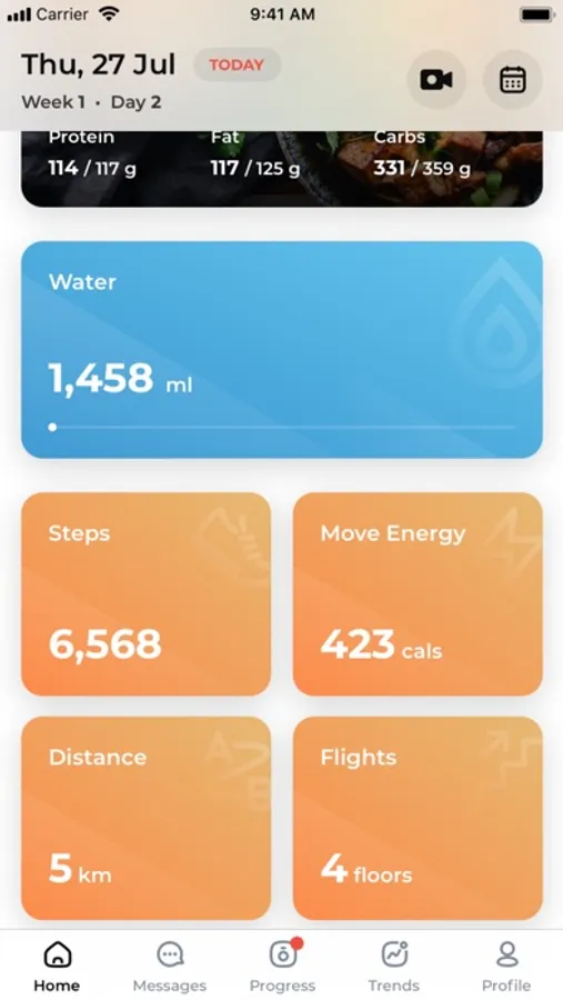 The app integrates with Apple Health to show your daily activity - distance, steps, active energy, and flights to help you better achieve your goals.