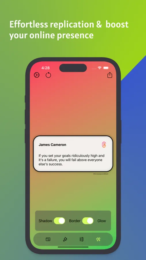 Use Crosspost Shot to make cool pictures that everyone loves. Forget plain words – pictures catch attention and make people like your stuff. It's easy with Crosspost Shot. Make great posts and even turn your good words into awesome pictures that impress people you know and new friends too.