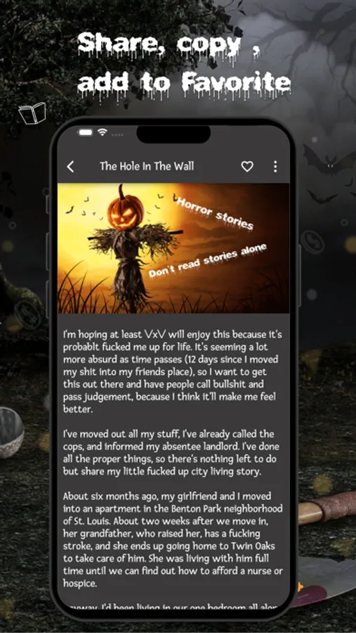 • Copy any story that captivates you and share it with your friends to experience the terror together.
