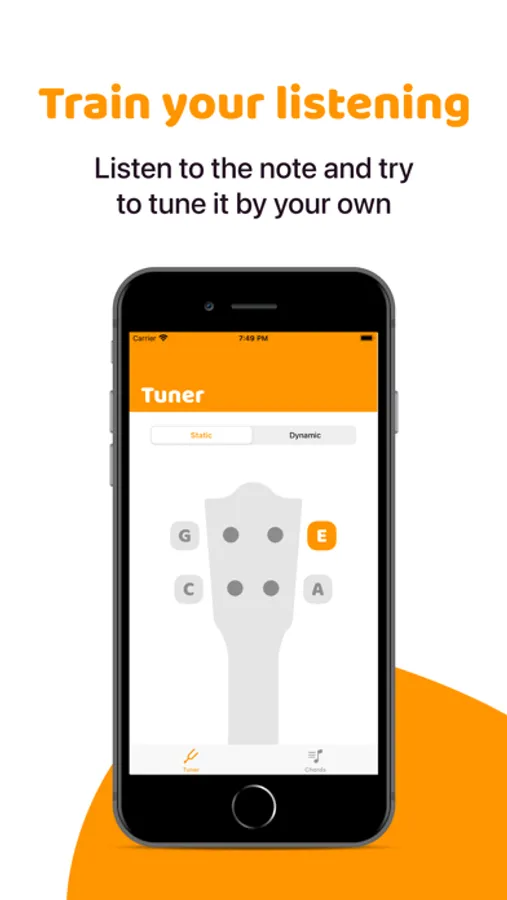 Get ready for your playing session. Choose between a static or a dynamic one. With the static, listen to the right pitch of every chord and train your ears. Otherwise, the dynamic tuner actively listens to what you are playing, recognizing the played chord and informing you about the state of its tuning. The visual representation of the headstock helps you to find the right tuner key.