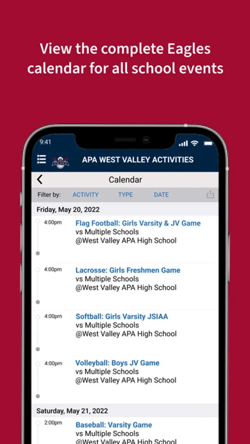 The APA West Valley Activities App is your complete source for all of your Team’s information, including schedules, rosters, scores, photos, highlights, and more.
