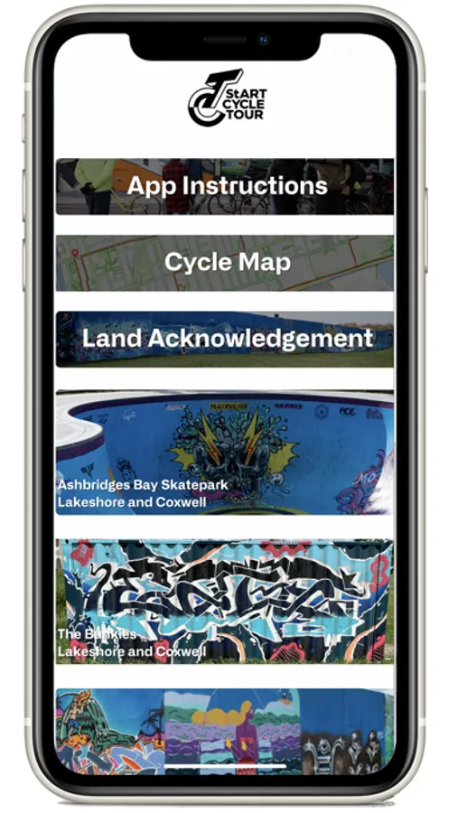 The StART Cycle Tour app is a new initiative from StreetART Toronto, created in collaboration with Concrete Lab and Cycle Toronto. This app allows Torontonians to visit eight iconic street art mural sites in the city's east end in their own time while learning the stories behind each project. StART was initiated by the City of Toronto in 2012 as part of its Graffiti Management Plan. StART manages a range of innovative programs for public spaces and streets that encourage active transportation like walking and cycling.