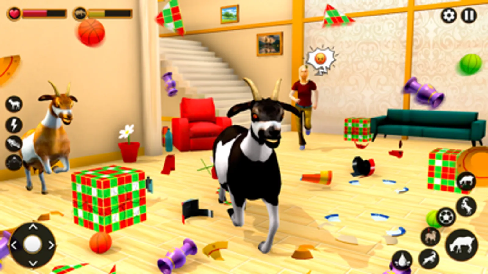 •Play as a crazy goat and survive with your family in the goat family adventure.