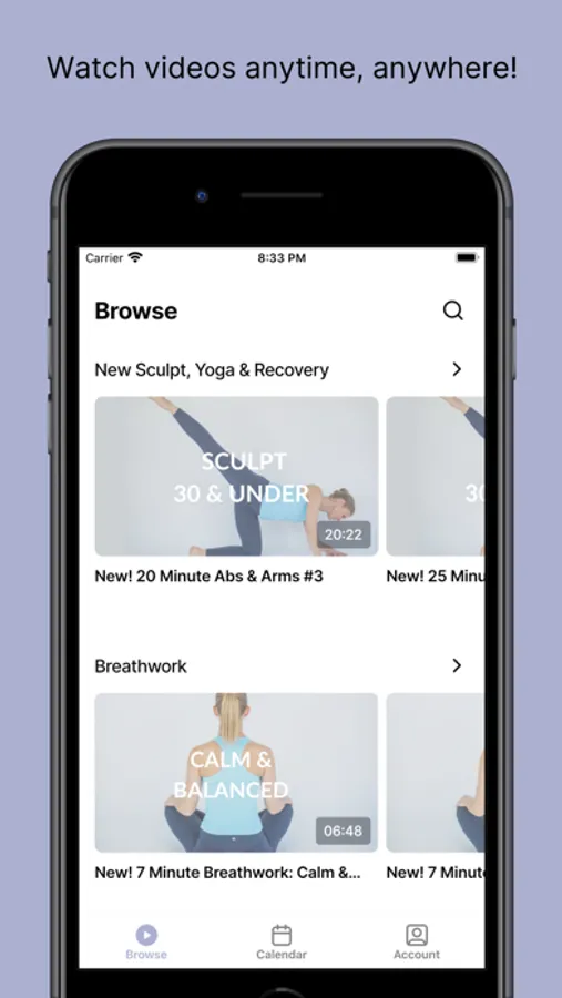 Over 200 on-demand workouts ranging from 5-60 minutes giving you unlimited access to sculpt, sculpt 30 and under, yoga, yoga stretch, recovery and breathwork videos. New content is added weekly and you have access to a monthly workout calendar to help you organize your workouts. Use the filters to help you search the content that meets your specific needs.