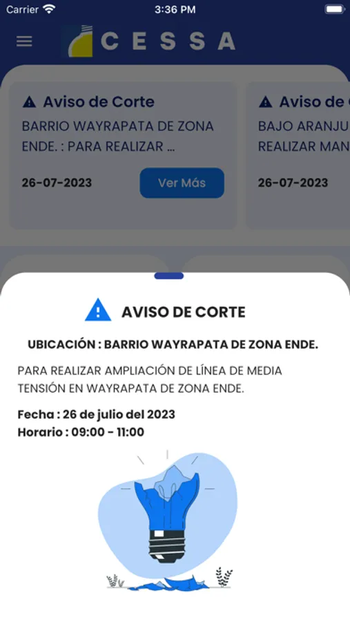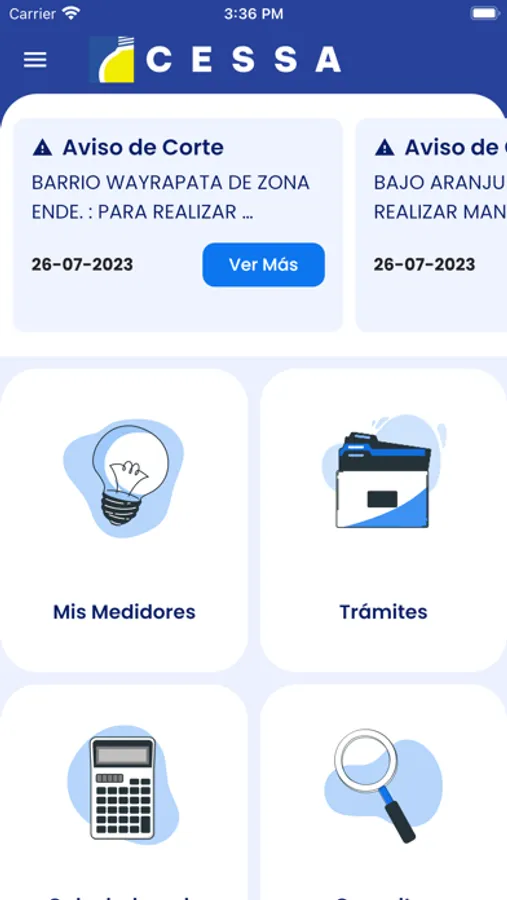 Aplicación oficial de consulta de información para clientes de la Empresa de Servicios Eléctricos CESSA, encuentra toda información relacionada con tu medidor de luz eléctrica, cuentas pendientes, cuentas pagadas, consulta de deuda, consulta de trámites, calculadora de consumo, historial de consumo, comunicados de corte programado por Zona.