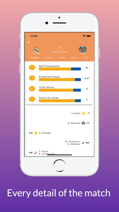 • Instant Push Notifications: Never miss a moment! Be the first to know when a goal is scored, a card is given, or any crucial event happens. Feel the pulse of the match right from your device.