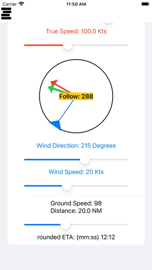 Calculates Density Altitude and Wind corrected headings, ground speed and time en route for a specific leg. No complications just the essentials.