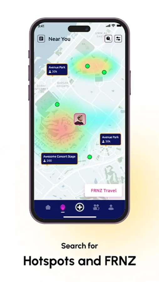 With the FRNZ App, you will be able to share your experiences in real time with people at hotspots and with your FRNZ. Like, comment and enjoy what your FRNZ are posting on their timelines.