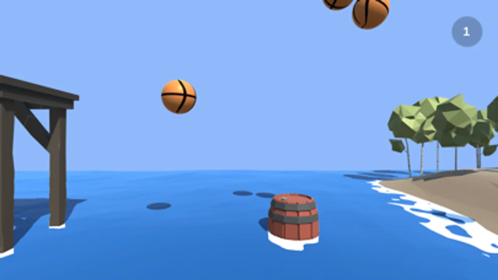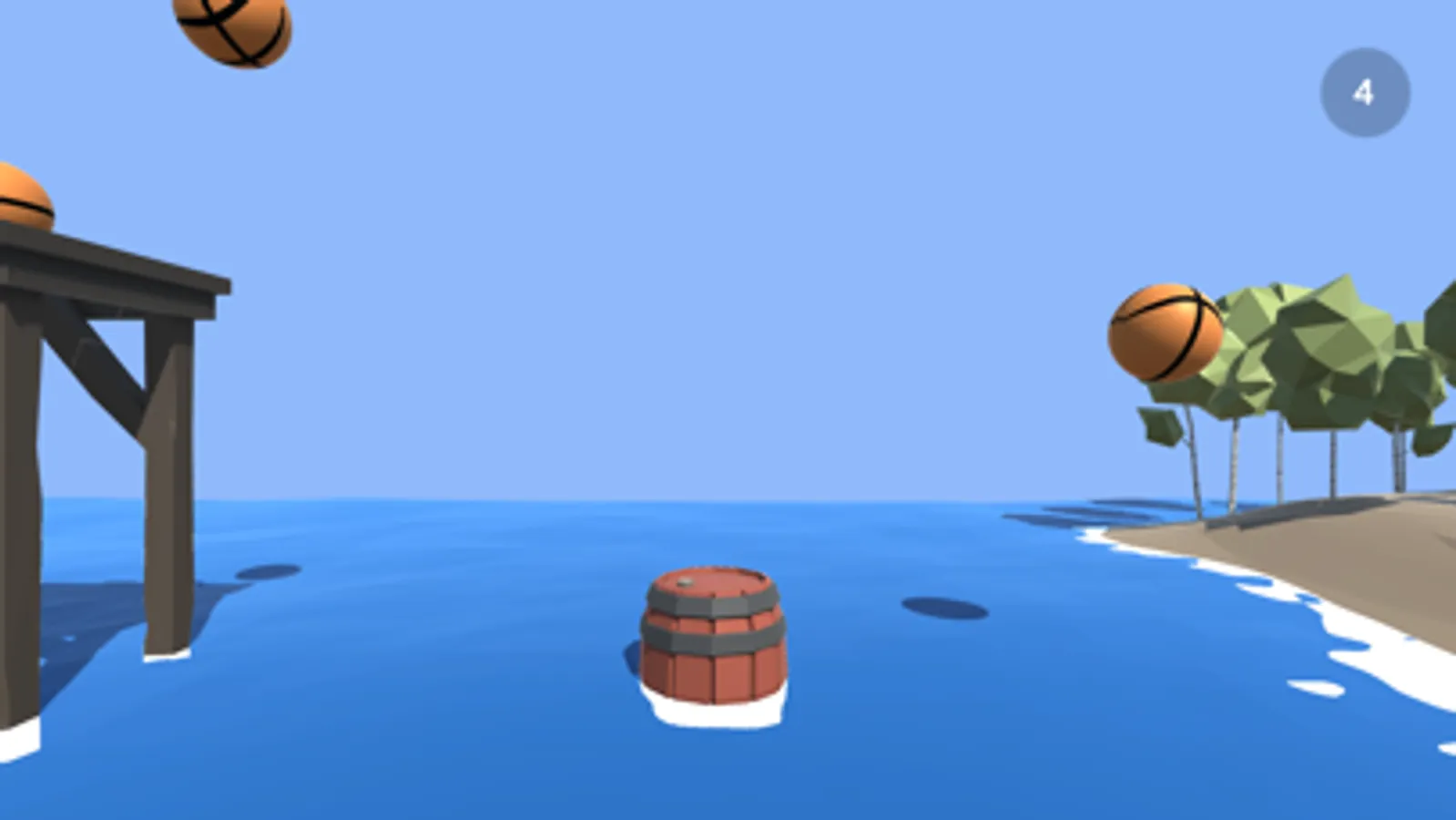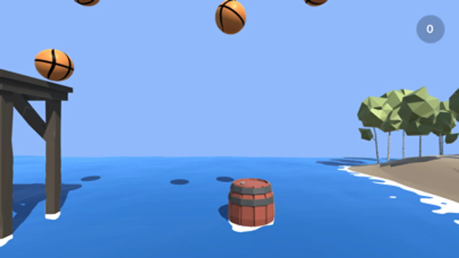 Use the wooden barrel to keep the bouncy balls away from the water, for each ball that get to the beach, you get one point.