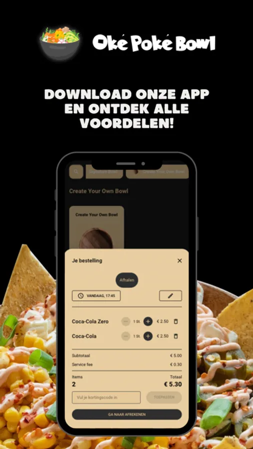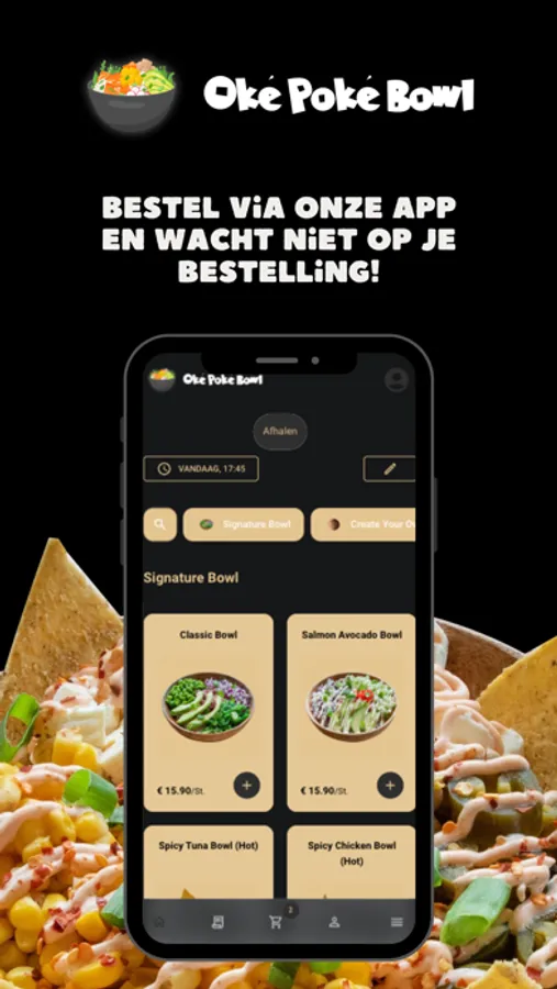 Waar u ook bent, met de app van Oké Poké Bowls kan u zonder zorgen bestellen uit het uitgebreide assortiment aan Poké bowls.