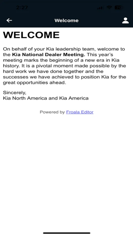 Welcome to the Kia National Dealer Meeting EventAPP! This app will be your tool for up-to-date information, agendas, communications and much more!