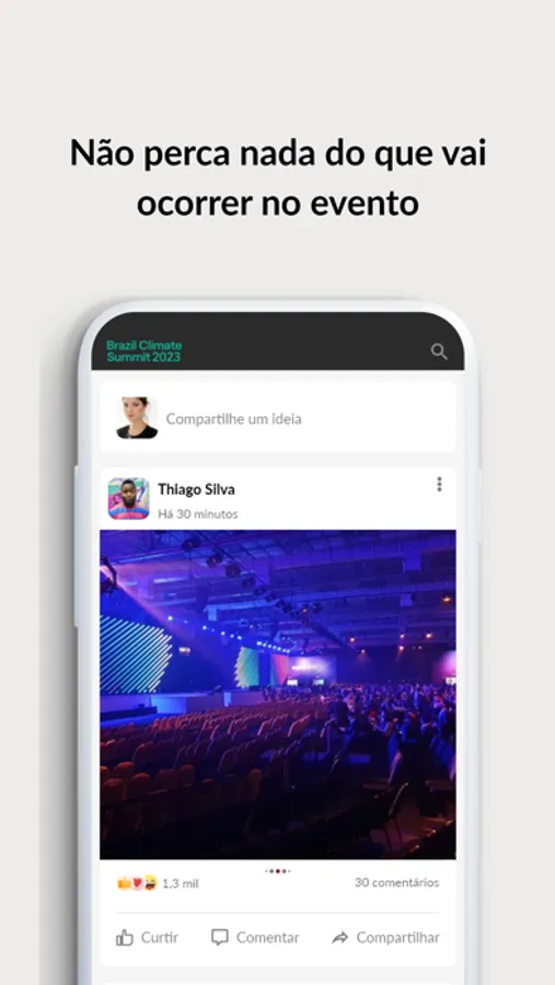 With the Brazil Climate Summit’s app, you have access to an exclusive social network, you can make new contacts, send questions to the speakers, send messages to other attendees and interact with the community. Besides that, you can check the schedule, evaluate content, give feedbacks and answer inquiries. Use the app and enjoy to the max all the resources that it can offer!