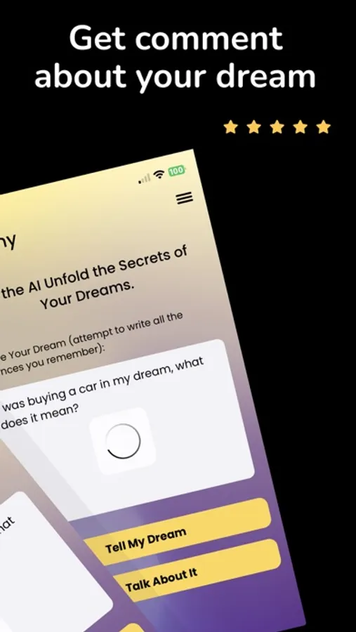 Ever wonder what's going on in your dreams? Dreamly is an innovative, user-friendly application that helps you decipher the complex world of your dreams. Explore the profound meanings of your dreams with our AI-powered dream interpretation feature, and add a new dimension to your waking life.
