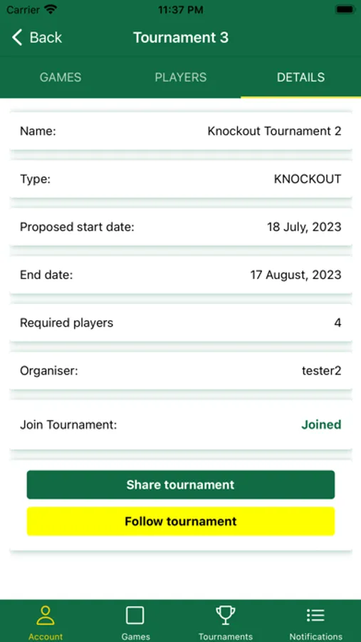 - Follow profiles, games and tournaments to get notified when there is any related activity.