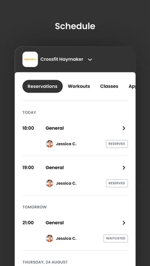 For members of Crossfit Haymaker to reserve their place in a class, sign up for gym events, and general account management like updating headshots and credit card on file.