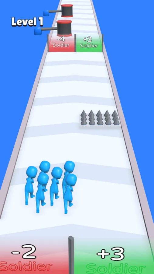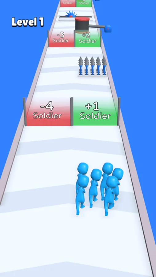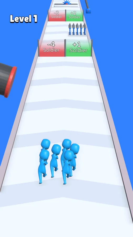Destroy the enemy by merging soldiers with cannons through the right gates!