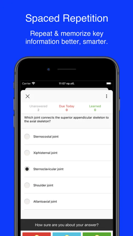 - Spaced Repetition Quiz: reinforce knowledge, driven by a smart learning algorithm