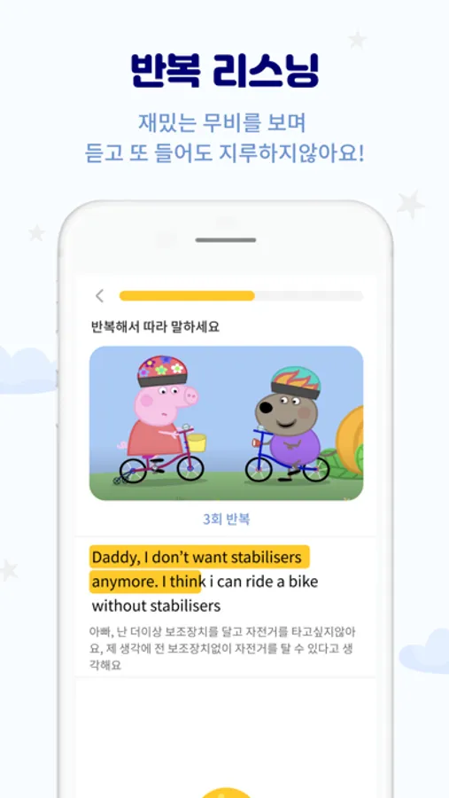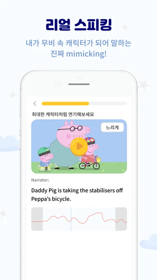 문장을 안 보고 말하면 AI 음성인식이 문장을 잘 말했는지 체크해주고, 스스로 발음을 교정해요