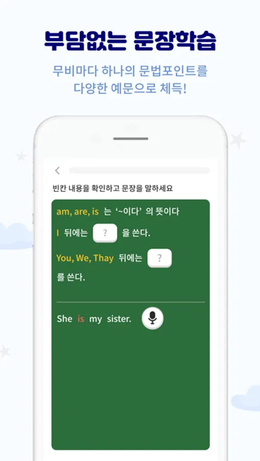 단어를 순서대로 배열해 문장을 완성하며 문장을 공부해요 어려울 땐 천천히 듣기, 다시 듣기 기능을 사용해보세요