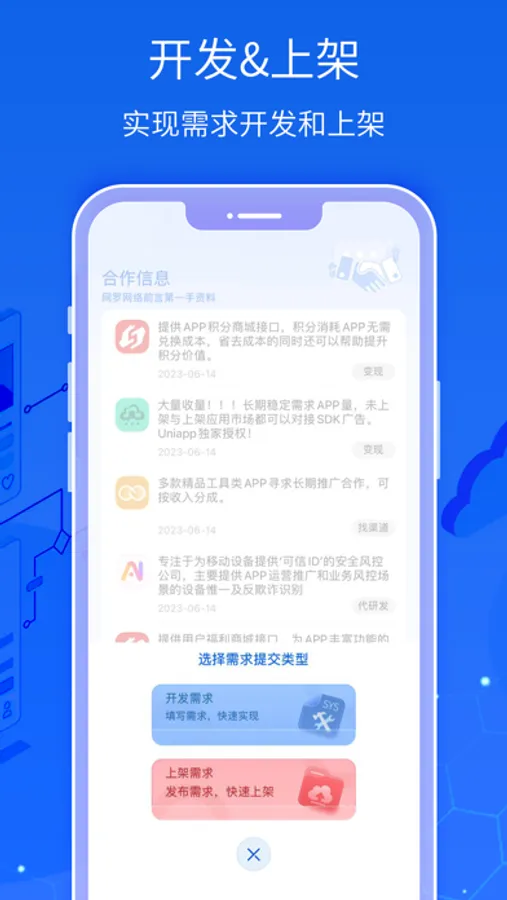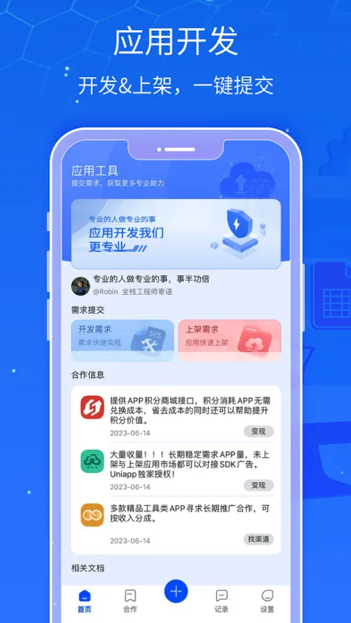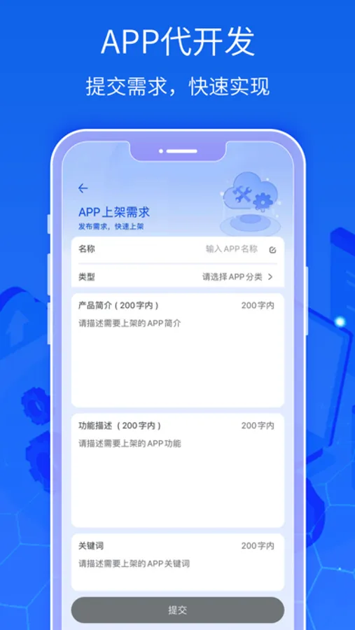 用户通过软件提交需求,我们有强大的技术团队为你量身制作属于你的APP。