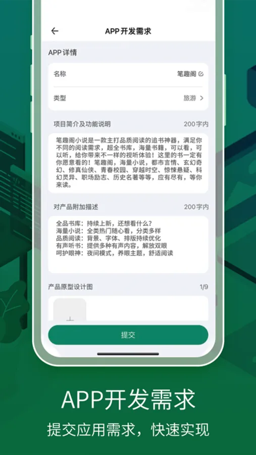 APP下载是一款私人定制APP,为用户提供APP私人定制、下载、上架等功能。用户可以根据自己需求描述产品需求,然后提交产品需求,我司强大的技术团队,根据用户的需求进行产品功能/交互设计,UI根据功能设计更好的产品体验,后台和前端会根据需求设计相关接口,以及最后产品的开发,专业测试完成后交互客户使用体验,满意之后我们会帮助其上架发布。
