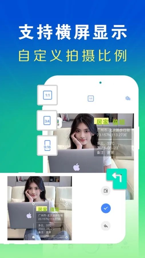 【今日水印打卡相机】首创水印模板灵活调整,不仅可以灵活调整位置,还可以灵活缩放,左右缩放、上下缩放、横屏拍照适配,想怎么调整就怎么调整,让水印更搭配您的照片,不再担心水印遮挡照片内容,也不再担心水印位置不符合您的心意。它是一款水印齐全,时间定位准确,防篡改的高端水印拍照相机。应用场景极其丰富,支持横屏显示、可自定义拍摄比例,如果没有您想要的水印模板,请反馈给我们,我们将会不断更新用户所需的水印,让您不断的尝鲜。