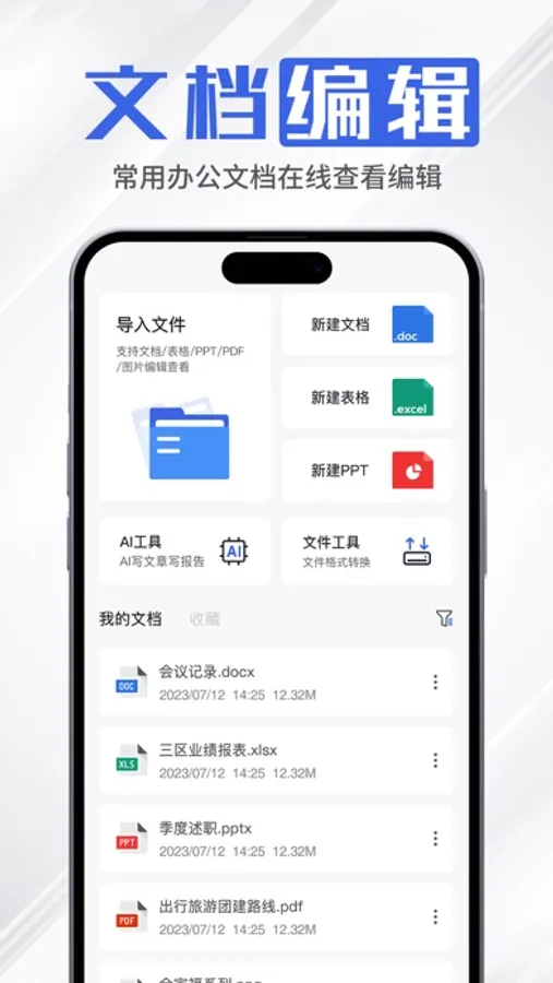 - 不仅如此,还支持快速打开微信、QQapp内的文档。更有AI创作功能,让您轻松生成优质文章、周报,甚至修改简历,让创作变得更加便捷高效。