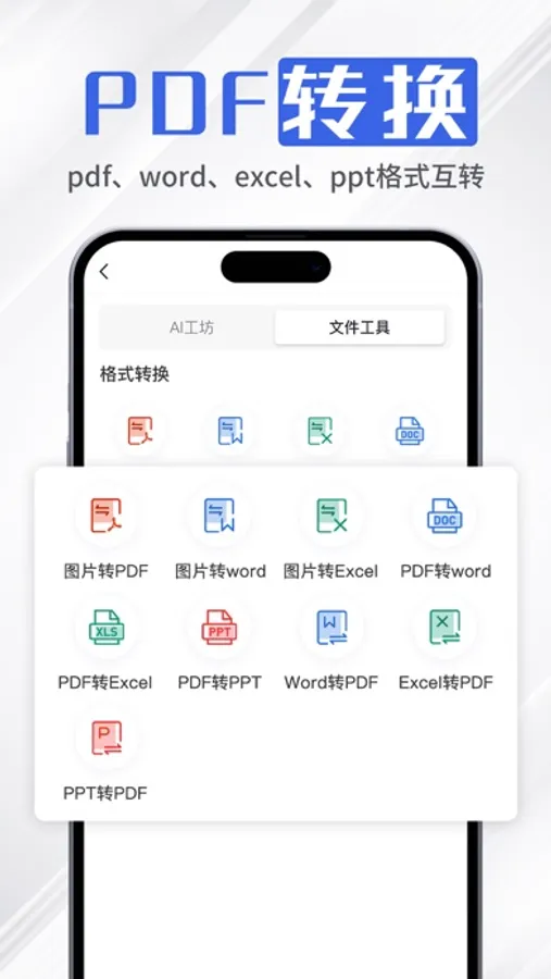 - 快速将文档转换为PDF、Excel、PPT等多种格式,方便分享和保存。