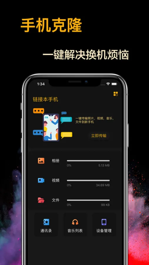 传输数据时无需连接WiFi、联网,摆脱数据线、一键搞定数据迁移。