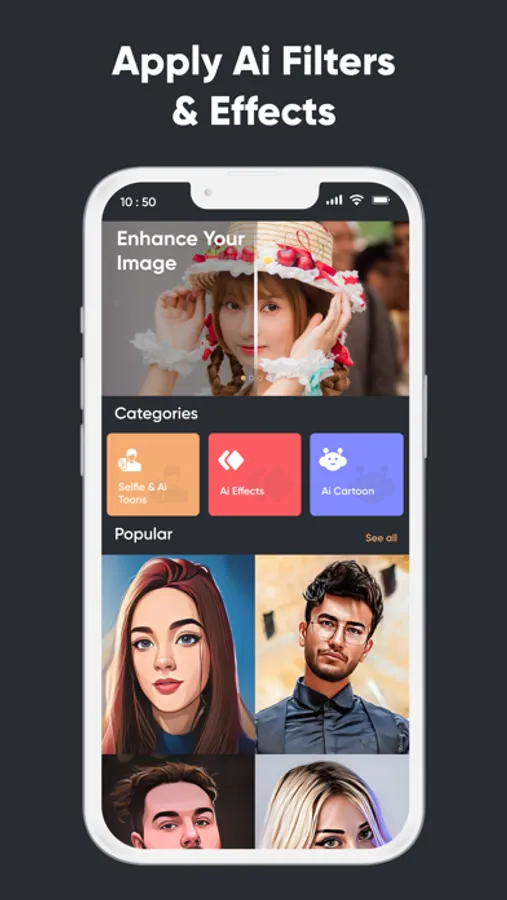 AI Photo Editor is tool for Photo Editing offers capturing and image editing with free presets, avatars, and AI filters. Change background of image in a single tap using AI photo generator. Editing app offers photo enhancer and picture editing AI tools to remove the background. Photo Filters, and AI Photo Editor that use AI filters for image paintings. Photo to cartoon maker use avatars for free photo editing.