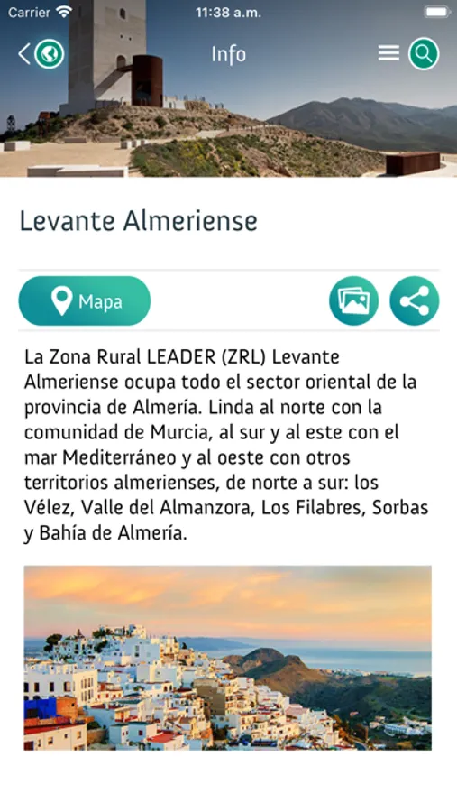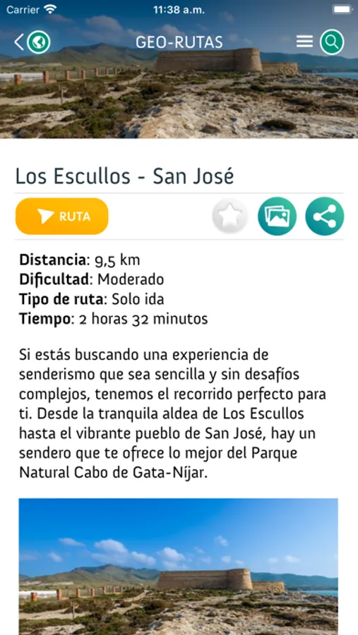 Se trata de una aplicación que permite conocer deferentes Geo-Itinerarios del Levante Almeriense. Una vez descargada en el móvil se puede utilizar sin cobertura de Internet para realizar la navegación y visualizar las fotos de las Geo-Rutas