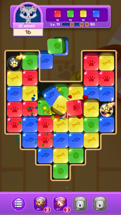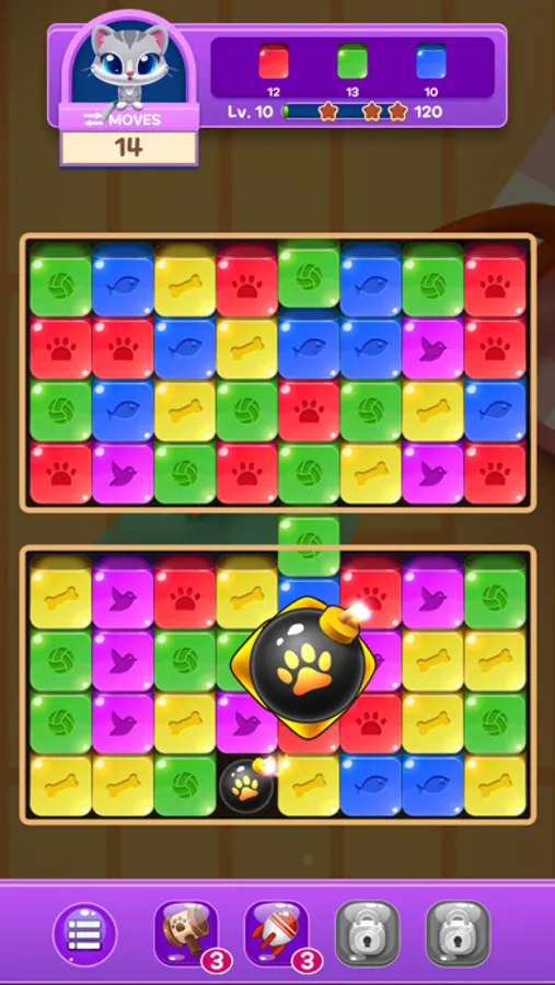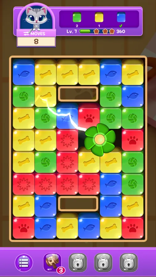 블록을 매치하고, 합쳐지면 더 강력해지는 부스터들을 사용해 장애물을 파괴하여 스테이지를 클리어하세요.