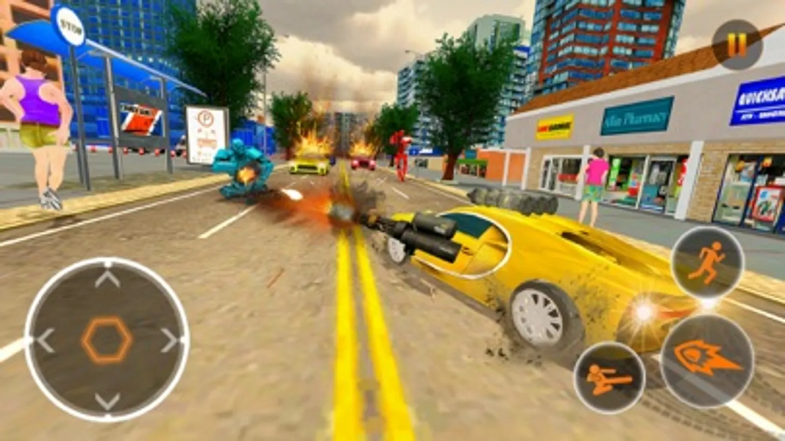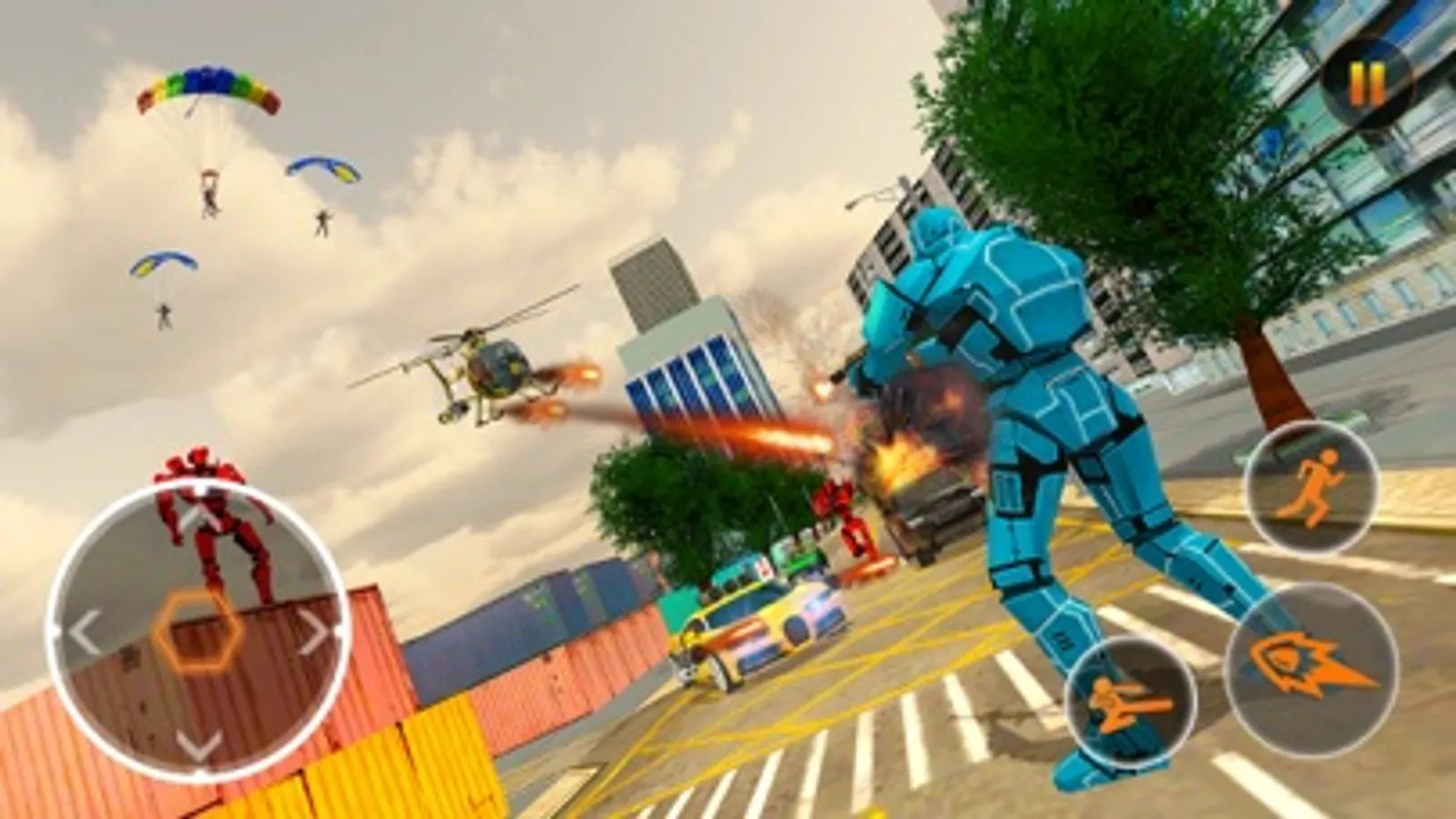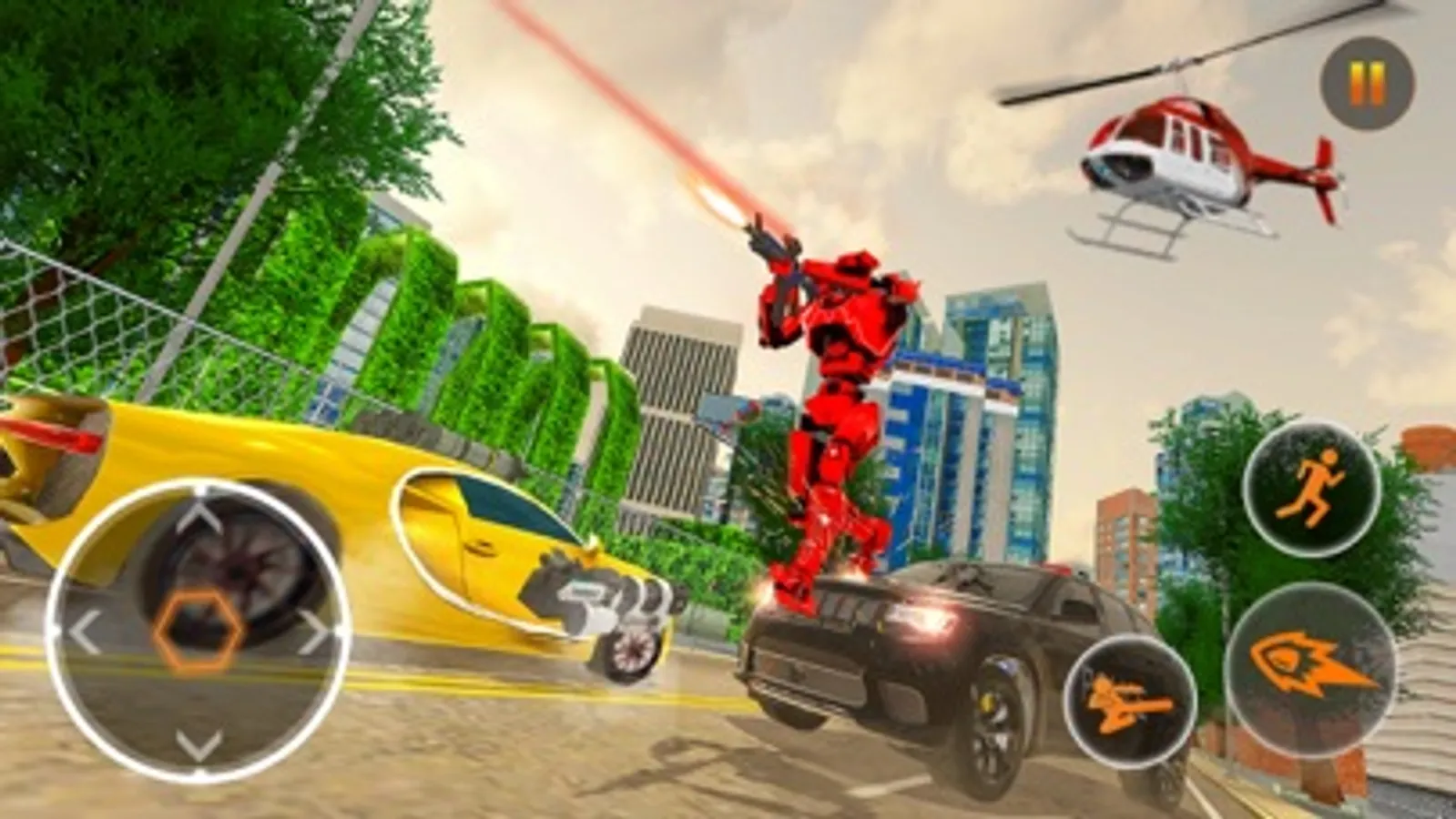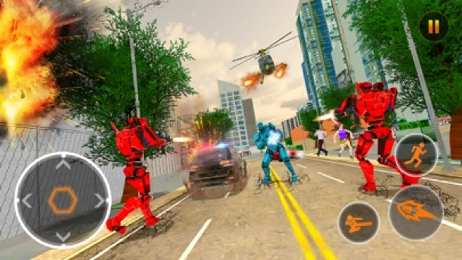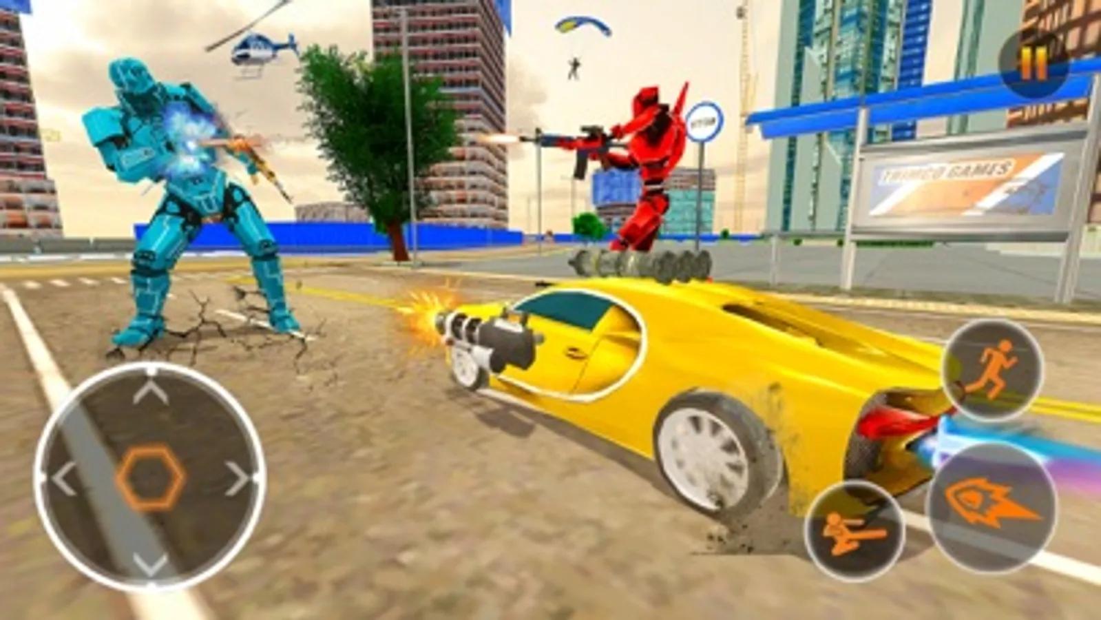 Your mission is to clear the city from the gangster bad robots who are all over the city. They are using helicopter to kill you. You can use car to take action against them. Clear the each mission within the time.
