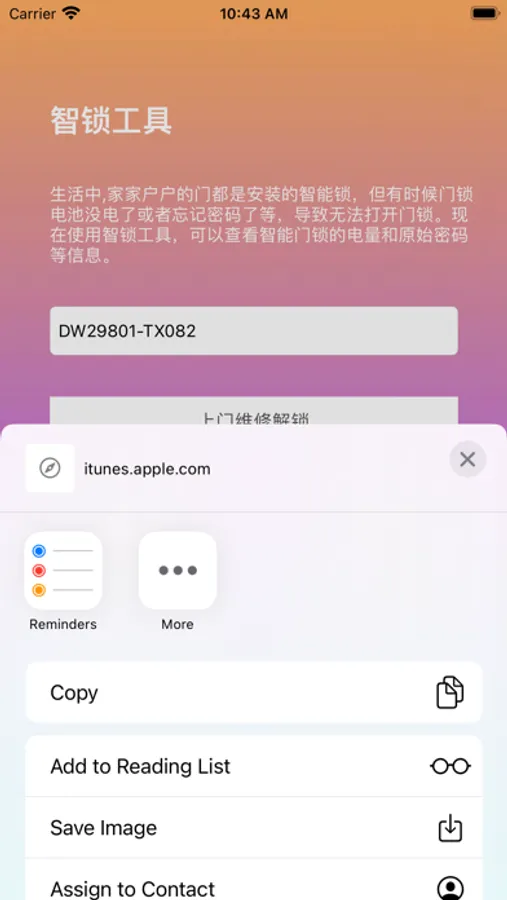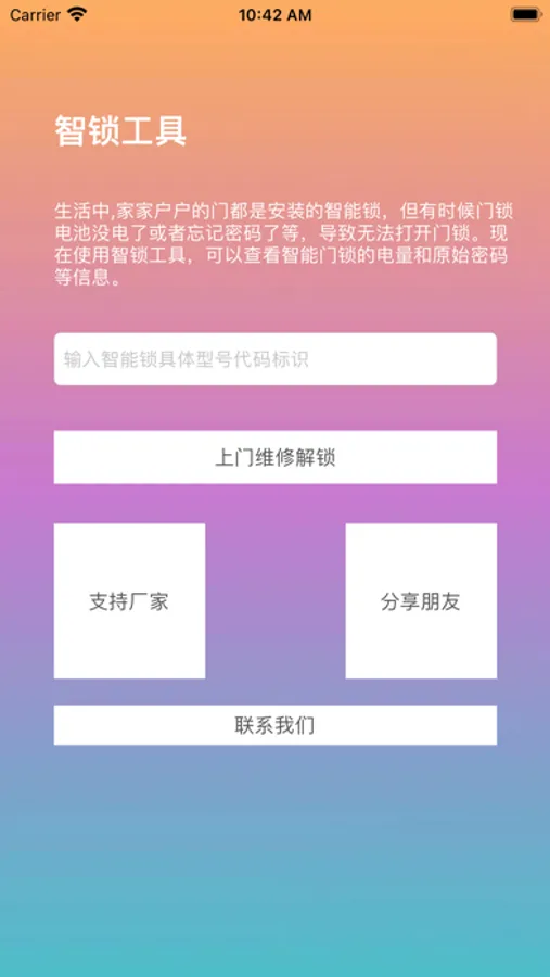 同时还提供了上门维修锁和解锁功能。分享给好友。