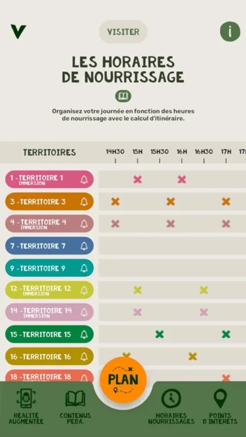 - Vous informer et être alerté des horaires de nourrissage sur les différents territoires.