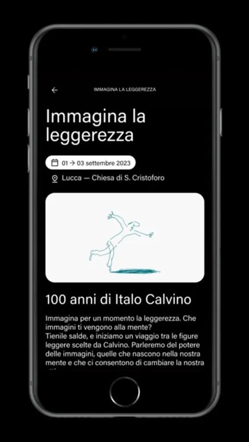 IMMAGINA è il Festival delle storie illustrate, dove si possono incontrare libri ricchi di figure e affrontare un viaggio di scoperta. È un sogno che prende forma a Lucca ogni anno con nuove idee, prospettive e ambizioni: tre giorni dedicati al potere delle storie come motore per il cambiamento, intimo, personale e collettivo. Con questa App vogliamo dare la possibilità di vivere quest'esperienza in modo ancora più completto e approfondito.