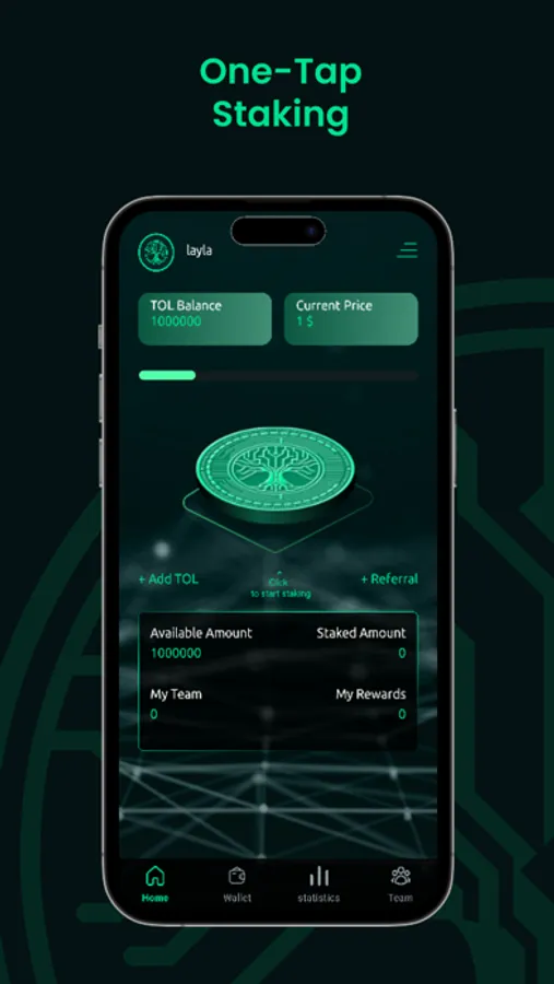 Build and expand your network with new ToLcoin participants through your own referral code and earn passive rewards.
