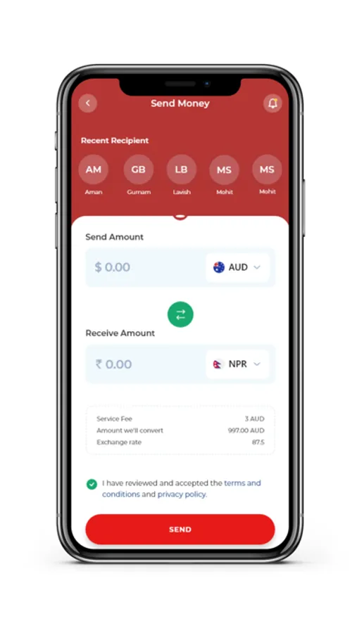This app aim to make money transfer process effortless and super fast. We maintain complete transparency to give you better control over the transactions and our thorough verification processes make sure the money is safe and reaches the right recipients.