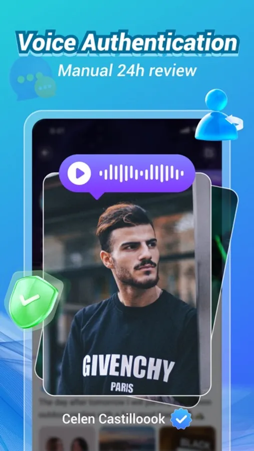 Make sure that all the friends you meet are real, pass voice quiz certification and strict data review and check, so that you will be free from false information and make friends with peace of mind.We will not tolerate any users who violate our regulations and provide you with a safe and reliable social platform.