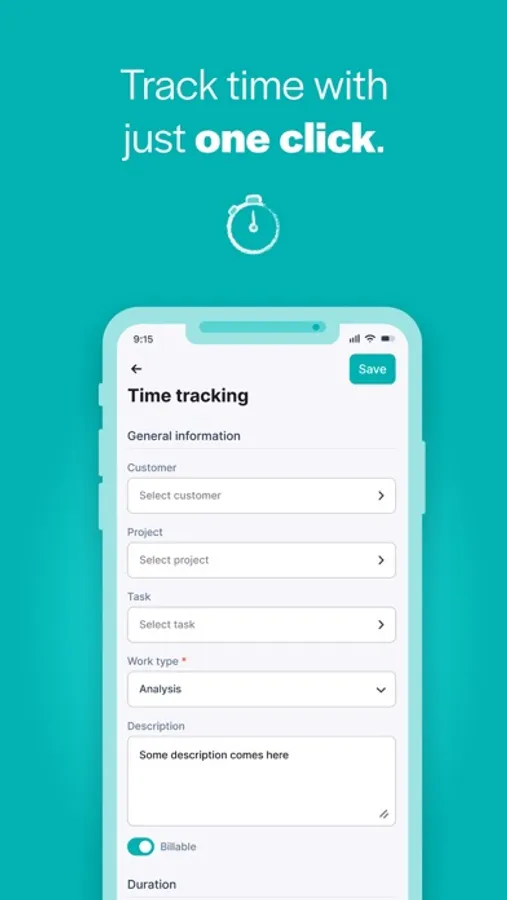 Whether you're working on your computer or on mobile, Teamleader Focus allows you to start time tracking in your browser and continue on your phone or vice versa. This streamlined process makes tracking your working hours easier than ever.