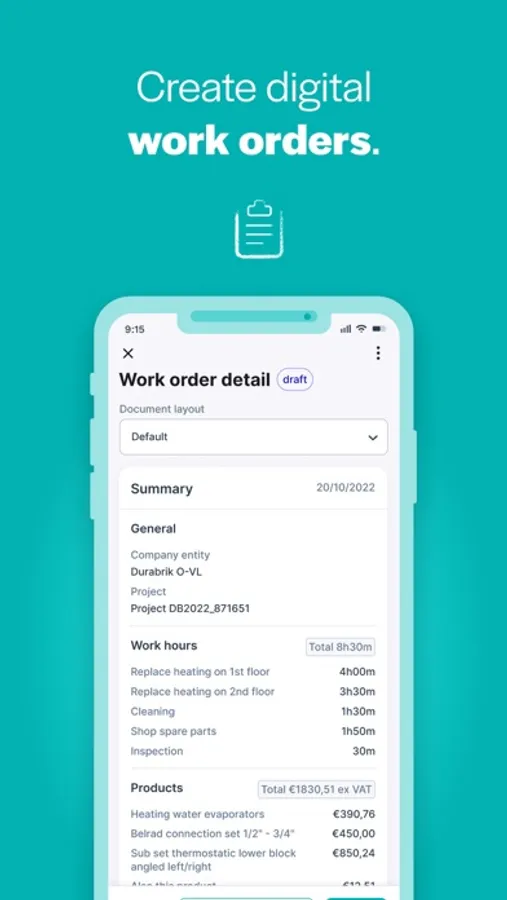 Create digital work orders and keep track off your mileage, working hours, and materials used. Our mobile app acts as your trusty right hand, allowing you to conveniently document and manage these details within a single platform.