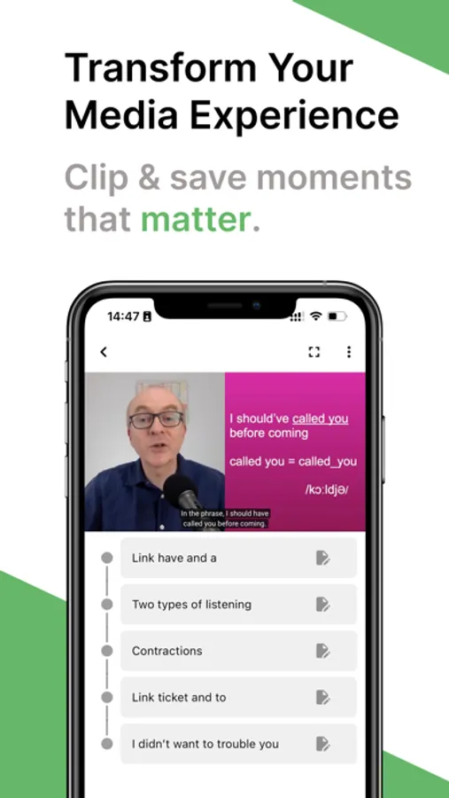 Clip & Save: Isolate the moments that matter. Create clips from any video or podcast to review later.