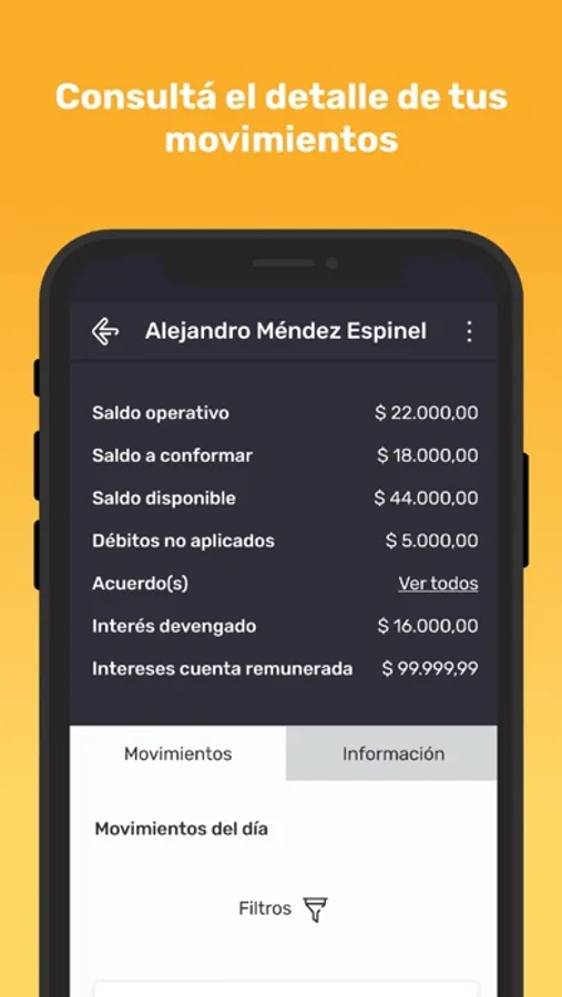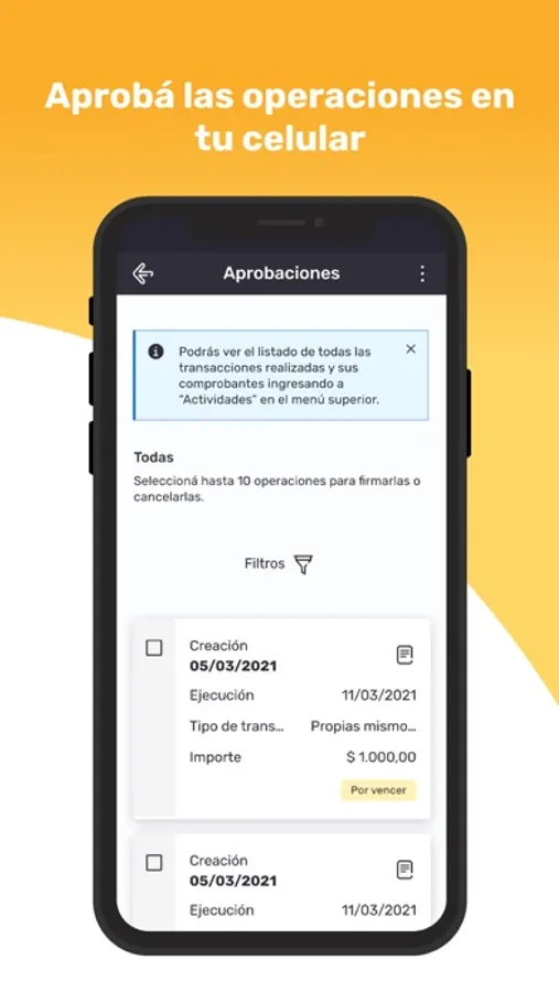 ⎈Aprobaciones: Consultá y firmá todas las operaciones que requieran tu autorización de manera fácil y segura.