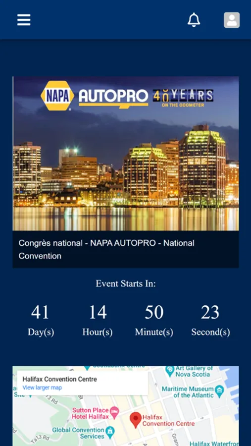 To ensure that you have the best possible experience during the 2023 NAPA AUTOPRO National Convention, take a few minutes to download the NAPA Halifax mobile app on your device. It’ll give you access to all the information you’ll need to get the most out of the convention. Key Features - Access the detailed agenda - Get to know our featured speakers - Receive up-to-the-minute notifications - Get around easily using the maps - Reach the NAPA team members - Communicate with other participants. *** Pour vous assurer de vivre la meilleure expérience possible pendant le Congrès national 2023 de NAPA AUTOPRO, prenez quelques minutes pour télécharger l’application de NAPA Halifax sur votre téléphone. Elle vous donnera accès à toutes les informations nécessaires pour tirer le maximum du congrès. Principales fonctionnalités - Consulter l’horaire détaillé - Faire connaissance avec nos conférenciers - Recevoir des notifications en temps réel - Circuler facilement grâce aux cartes - Contacter les membres de l’équipe NAPA - Communiquer avec les autres participants.