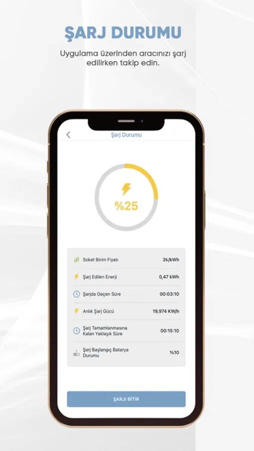 Uygulama üzerinden aracınızın şarj sürecini takip edebilirsiniz.