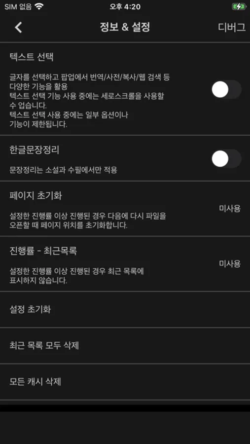 - 텍스트 선택 및 복사, 검색 (설정에서 별도로 활성화)