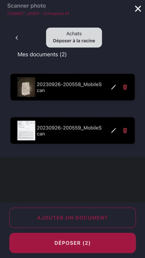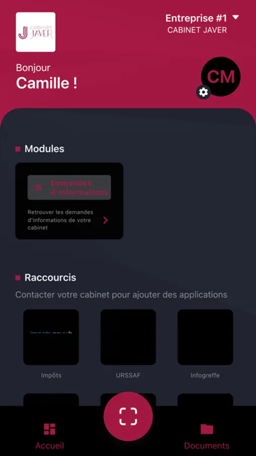 L'application CABINET JAVER permet aux utilisateurs de scanner leurs documents depuis leur smartphone et de les envoyer directement sur la plateforme.