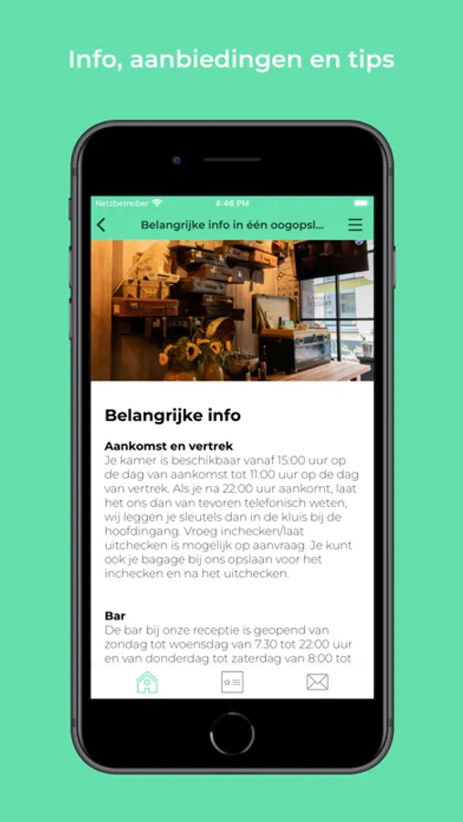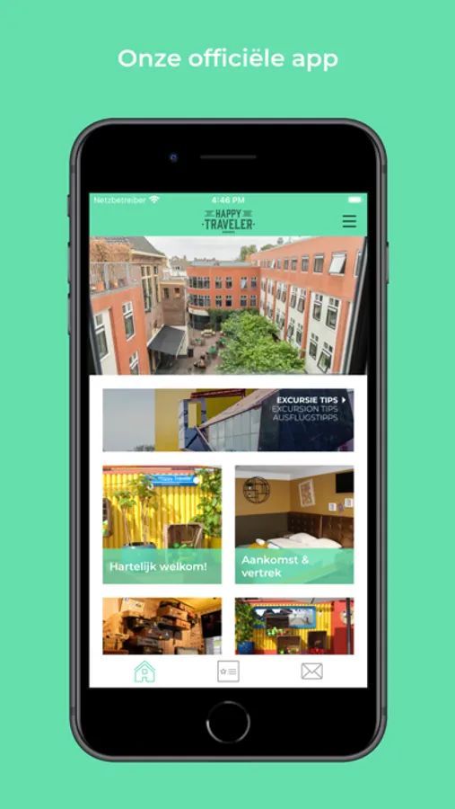 De app is uw ideale reisgenoot — hier vindt u de belangrijkste informatie over uw vakantie in hotel The Happy Traveler in Nederland. Download de app nu!