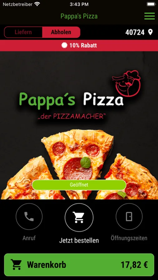 Immer frisch und mit den besten Zutaten zubereitet. Wir bieten eine große Auswahl an wohlschmeckenden Speisen. Ob mit Fleisch oder vegetarisch – es ist für jeden Geschmack das Richtige dabei und die großen Portionen sorgen dafür, dass Sie von dem leckeren Essen auch richtig satt werden - Pappa's Pizza