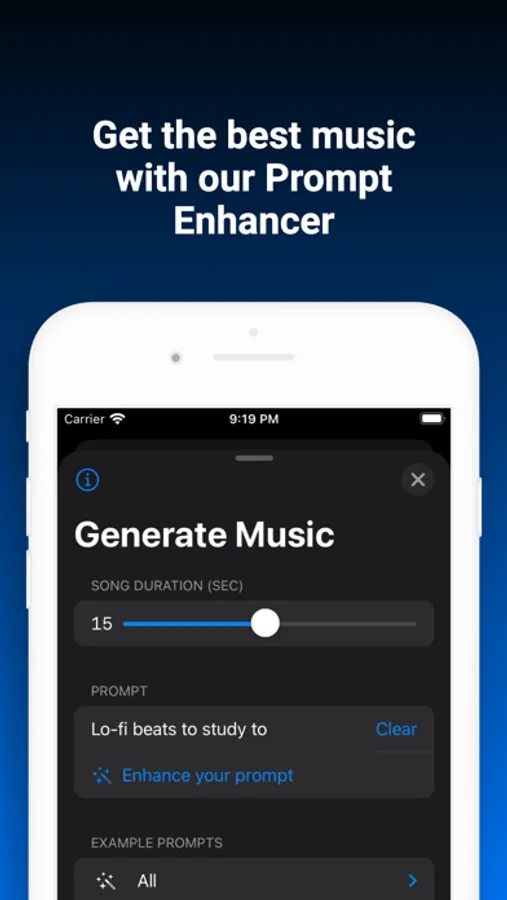 Use the Prompt Enhancer to extend your prompt.